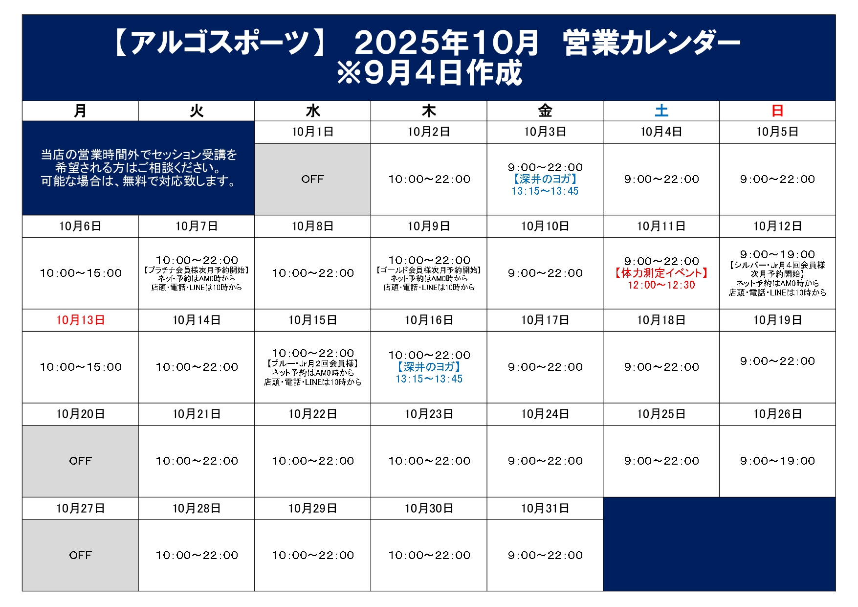 HOME > お知らせ一覧 > 2025年のお知らせ > 2025年10月 営業日・イベントスケジュールのご案内