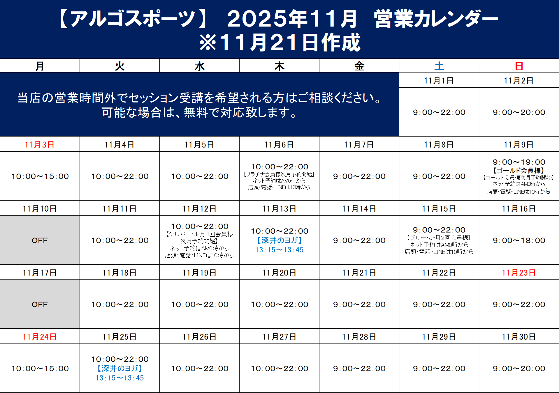 HOME > お知らせ一覧 > 2025年のお知らせ > 2025年11月 営業日・イベントスケジュールのご案内