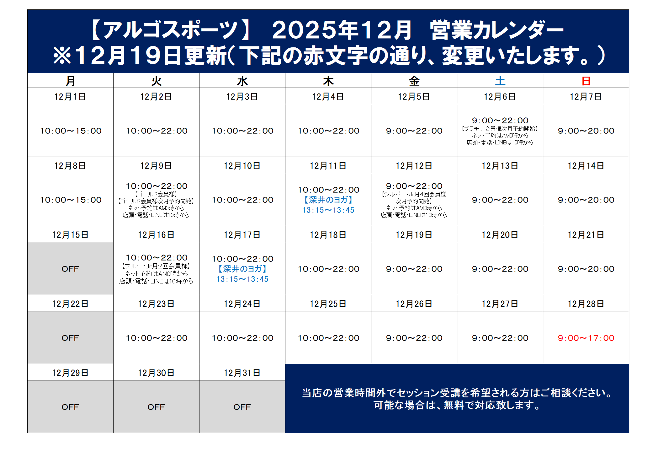 HOME > お知らせ一覧 > 2025年のお知らせ > 2025年12月 営業日・イベントスケジュールのご案内